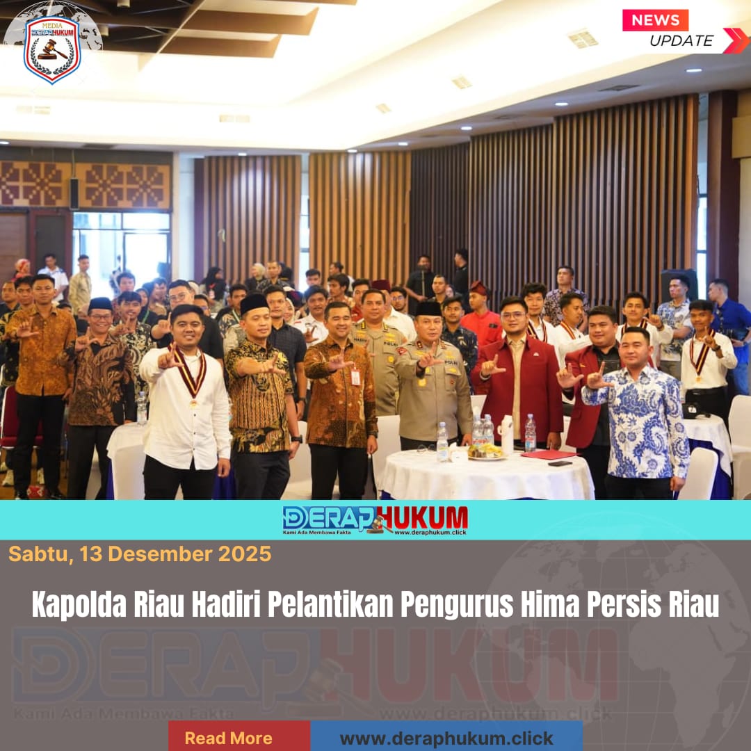 Pekanbaru, Riau | DerapHukum.click | Kapolda Riau Irjen Pol Dr. Herry Heryawan menghadiri pelantikan pengurus Pimpinan Wilayah Himpunan Mahasiswa Persatuan Islam (PW Hima Persis) Riau yang digelar di Gedung Dharma Wanita, Jalan Diponegoro, Pekanbaru, Jumat (12/12/2025).
