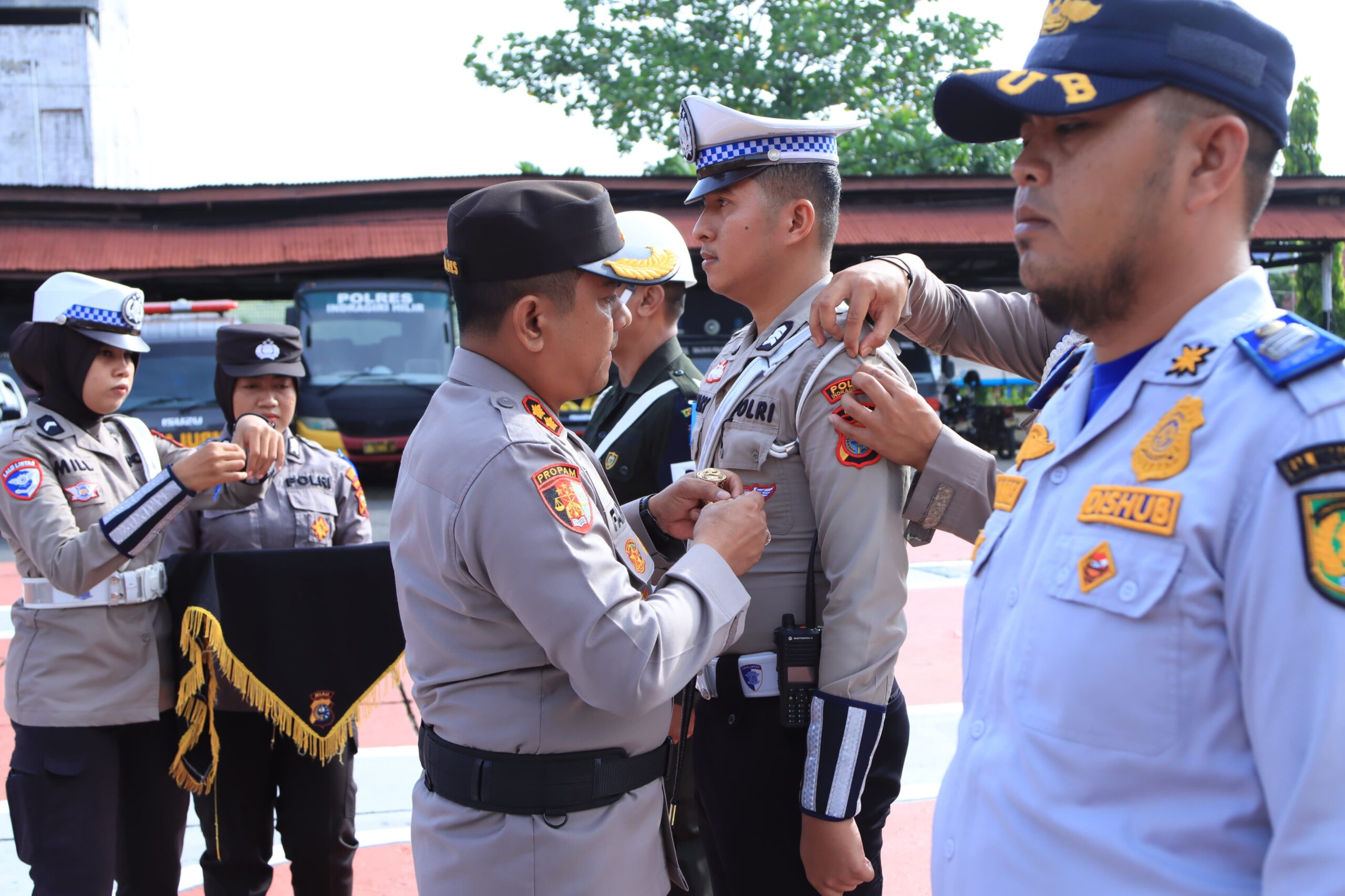 Sebagai tanda dimulainya operasi, Kapolres menyematkan pita tanda operasi kepada perwakilan personel dari unsur Polri, TNI, dan Dinas Perhubungan.