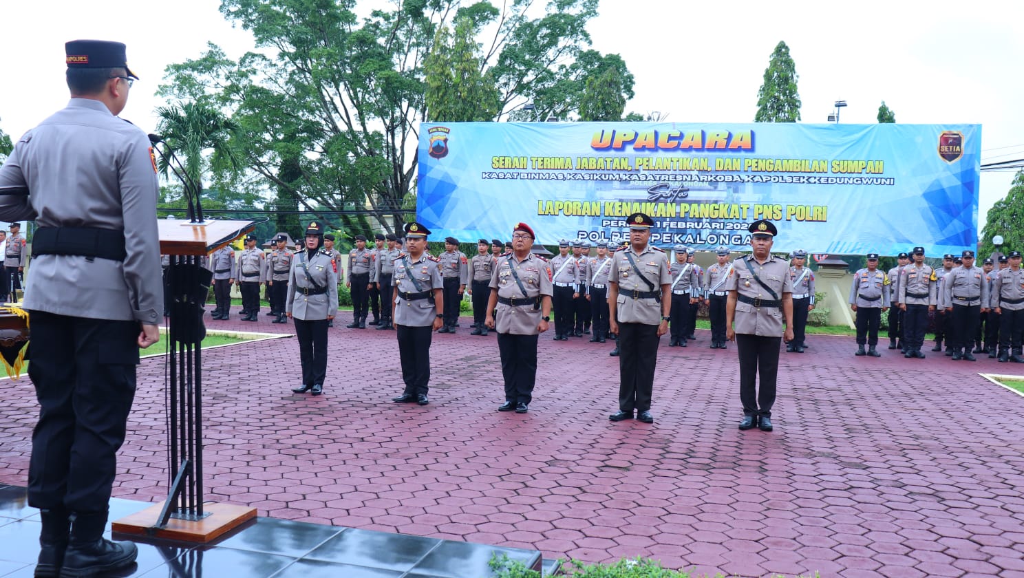 Upacara yang dipimpin langsung oleh Kapolres Pekalongan AKBP Rachmad C. Yusuf, S.I.K., M.Si., ini berlangsung khidmat. Tak hanya Sertijab, momentum ini juga dibarengi dengan pelantikan jabatan Kasikum serta upacara kenaikan pangkat bagi personel PNS Polri.