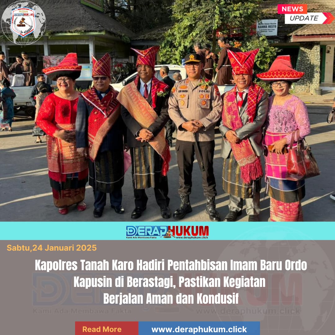Kapolres Tanah Karo AKBP Pebriandi Haloho, S.H., S.I.K., M.Si menghadiri kegiatan Pentahbisan Imam Baru Ordo Kapusin Medan yang digelar di Gereja Katolik Santo Fransiskus Assisi Berastagi, Sabtu (24/1/2026) pagi.
