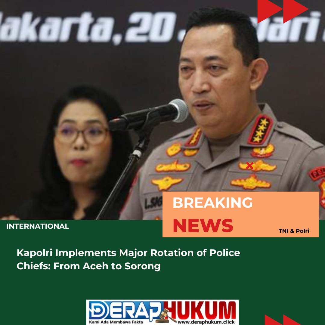 INTERNATIONAL | Deraphukum.click | In a significant organizational move, the Chief of the Indonesian National Police (Kapolri), General Listyo Sigit Prabowo, has initiated a comprehensive rotation affecting numerous police chiefs (Kapolres) across the country. This strategic decision encompasses regions from Aceh to Sorong, aiming to enhance the effectiveness and adaptability of the national police force.
