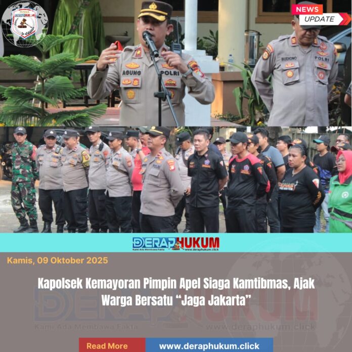 Jakarta Pusat, | Deraphukum.click | Dalam upaya memperkuat sinergi antara aparat keamanan dan masyarakat, Polsek Kemayoran, Jakarta Pusat, menggelar Apel Siaga Kamtibmas di halaman Mapolsek Kemayoran, Kamis (9/10/2025) sore.