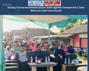 KARAWANG, | Deraphukum.click | 23 Maret 2025 – Karang Taruna Kecamatan Jatisari kembali menggelar agenda tahunan yang ke-5, dengan Desa Mekarsari sebagai tuan rumah penyelenggaraan tahun ini. Acara yang penuh kebersamaan ini dihadiri oleh berbagai pihak, termasuk Camat Jatisari, perwakilan Pemerintah Desa Mekarsari, tokoh masyarakat, serta anggota DPRD Karawang dari Partai NasDem, Haji Erik.