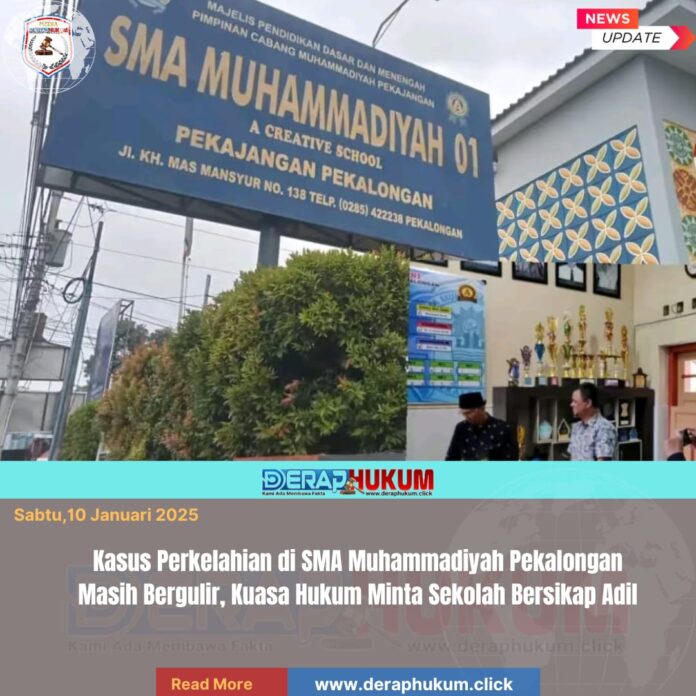 Kota Pekalongan, | Deraphukum.click | Kasus perkelahian yang terjadi di SMA Muhammadiyah Kota Pekalongan pada 15 Agustus 2025 hingga kini masih bergulir di Polres Pekalongan Kota. Perkara tersebut ditangani oleh Unit IV/PPA Sat Reskrim dengan nomor perkara B/14/I/RES.1.6/2026/Reskrim.Dari lima anak yang diduga terlibat dalam peristiwa tersebut, tiga di antaranya menunjuk Kantor Hukum Didik Pramono, S.H & Partner sebagai kuasa hukum.