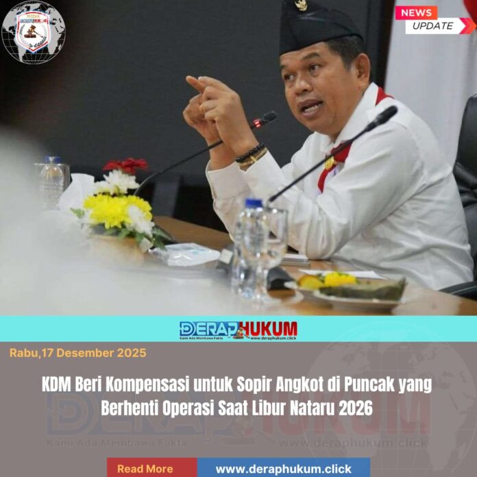 Bandung,Jawa Barat | Deraphukum.click | Gubernur Jawa Barat Dedi Mulyadi akan memberikan kompensasi kepada pemilik angkutan kota, sopir angkot dan sopir cadangan di kawasan Puncak, Bogor yang diminta berhenti beroperasi sementara selama libur Natal dan Tahun Baru (Nataru) 2026.