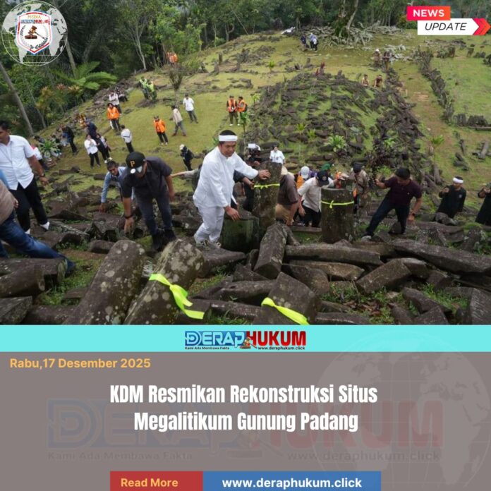 Cianjur,Jawa Barat | Deraphukum.click | Gubernur Jawa Barat Dedi Mulyadi meresmikan dimulainya rekonstruksi Situs Gunung Padang yang berlokasi di Desa Karyamukti, Kecamatan Campaka, Kabupaten Cianjur,