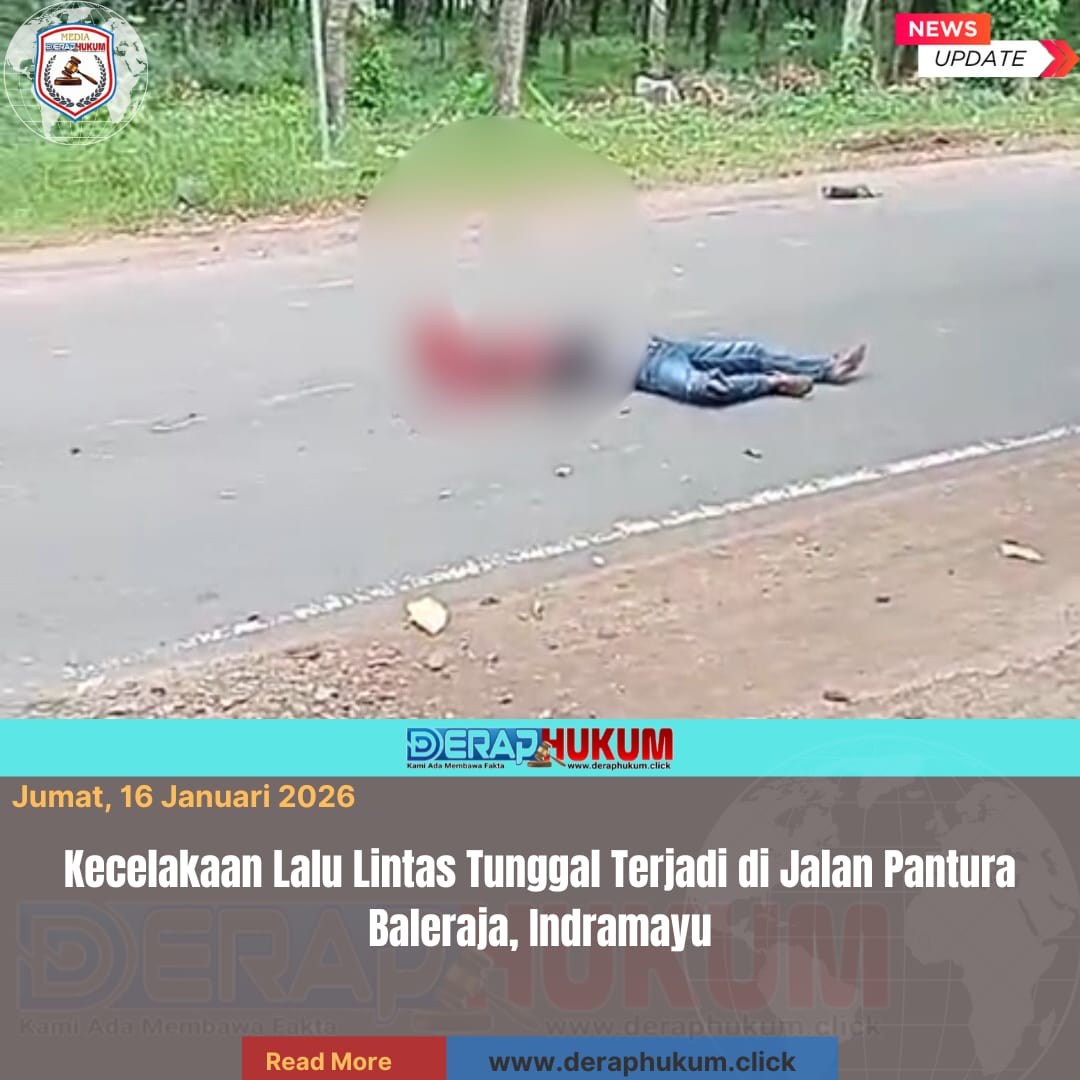 Indramayu, Jawa Barat | Deraphukum.click | Telah terjadi kecelakaan lalu lintas tunggal di Jalan Pantura Baleraja, Kabupaten Indramayu, pada Kamis (15/1/2026) sekitar pukul 16.45 WIB. Kecelakaan ini melibatkan satu kendaraan tanpa adanya keterlibatan kendaraan lain.
