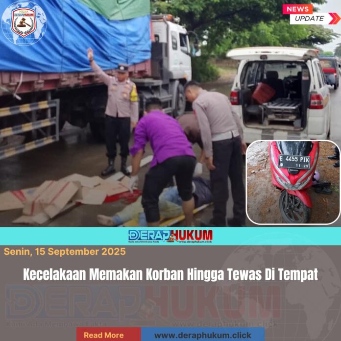 Indramayu, Jawa Barat | Deraphukum.click | Seorang pengendara sepeda motor berinisial TNH (22) tewas dalam kecelakaan di Jalur Pantura Desa Santing, Kecamatan Losarang, Kabupaten Indramayu, Jawa Barat, Kamis (11/9/2025) pagi.