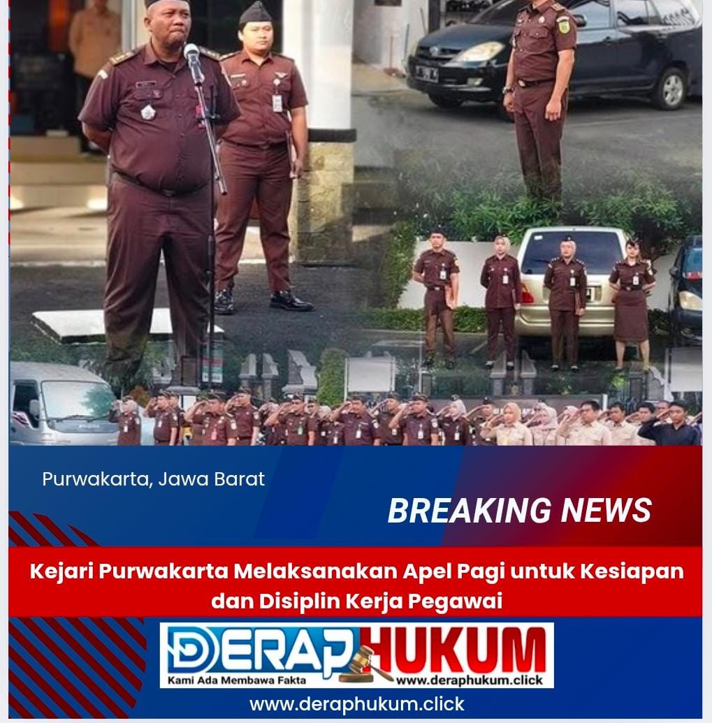 PURWAKARTA-JAWA BARAT | Deraphukum.click | Senin, 30 Desember 2024 Bertempat di Halaman Kantor Kejaksaan Negeri Purwakarta. Kepala Seksi Tindak Pidana Khusus Nana Lukmana, S.H., M.H. selaku penerima Apel dan diikuti oleh seluruh Pegawai dan Tenaga PPNPN Kejaksaan Negeri Purwakarta. Apel pagi yang dilakukan secara rutin memiliki manfaat bagi