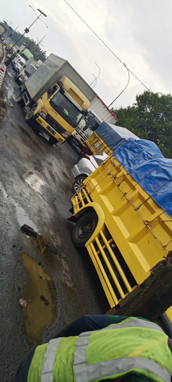 Berdasarkan pantauan di lokasi, sejumlah pekerja dengan rompi hijau dan oranye tampak melakukan perbaikan darurat pada titik-titik jalan yang mengalami kerusakan parah. Namun, tingginya volume kendaraan serta kondisi jalur yang sempit membuat proses perbaikan berjalan lambat. Truk kontainer dan truk angkutan barang harus melintas secara bergantian, sehingga antrean panjang tidak terhindarkan.