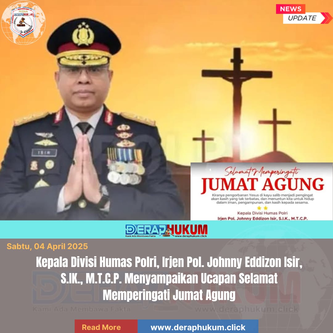 Jakarta,DKI | Deraphukum.click | Kepala Divisi Humas Polri, Irjen Pol. Johnny Eddizon Isir, S.I.K., M.T.C.P. menyampaikan ucapan selamat memperingati Jumat Agung (03/04/2026) kepada seluruh umat Kristiani di Indonesia.