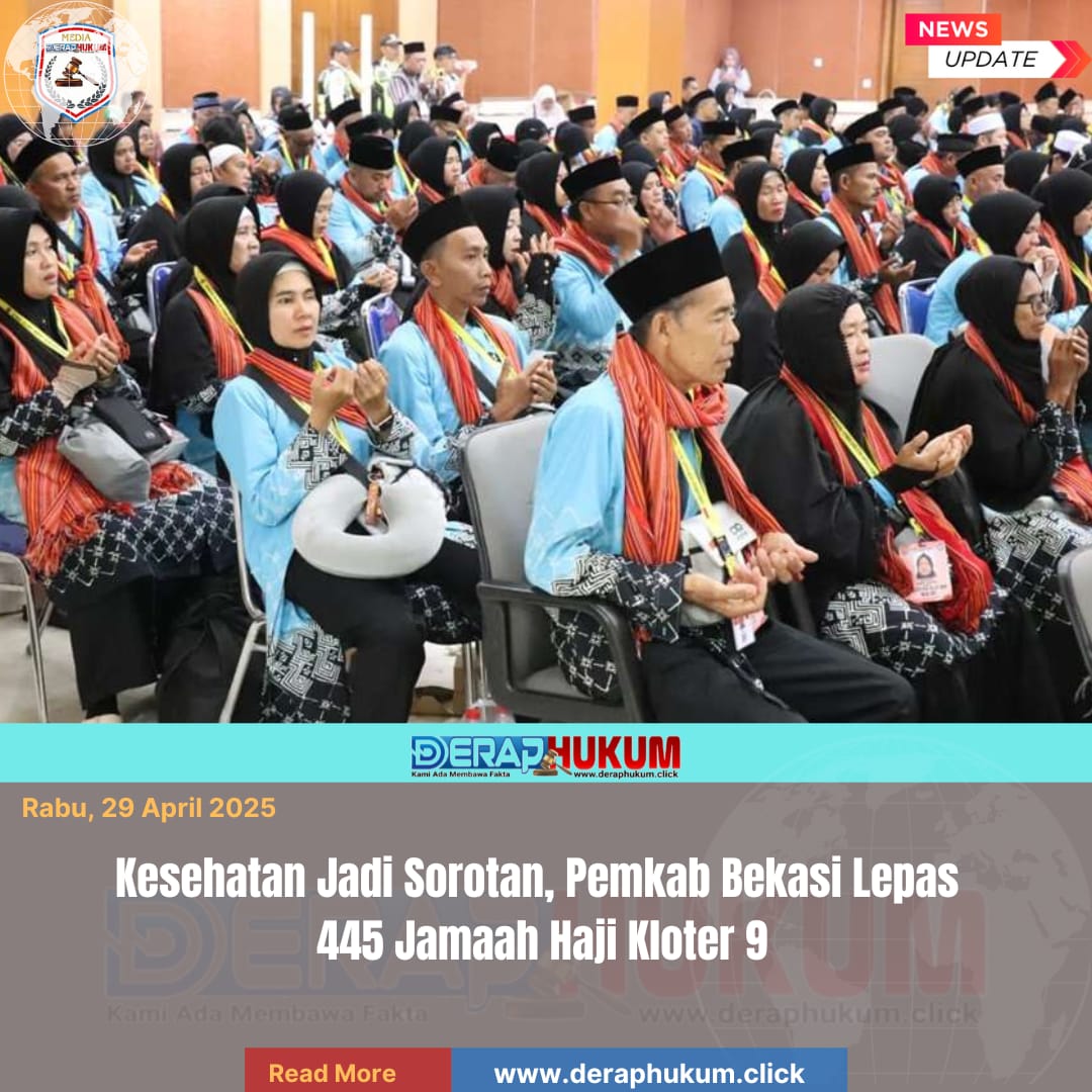 Bekasi,Jawa Barat | Deraphukum.click | Pelepasan 445 jamaah haji Kabupaten Bekasi Kloter 9 Tahun 1447 H/2026 M berlangsung di Gedung Wibawa Mukti, Kompleks Pemkab Bekasi, Senin (27/4/2026).