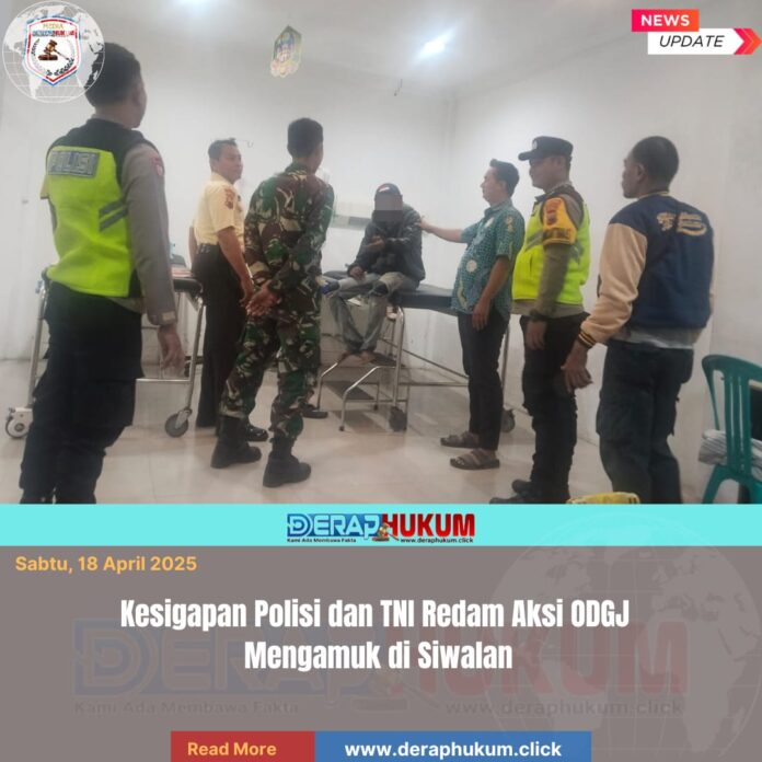 Pekalongan,Jawa Tengah | Deraphukum.click | Polres Pekalongan – Polda Jateng – Aparat gabungan dari Polsek Sragi, Koramil Sragi, dan Trantib Kecamatan Siwalan bergerak cepat menindaklanjuti laporan masyarakat terkait seorang orang dengan gangguan jiwa (ODGJ) yang mengamuk di Dukuh Yosorejo, Desa Yosorejo, Kecamatan Siwalan, Kabupaten Pekalongan, Sabtu (18/4/2026) dini hari.