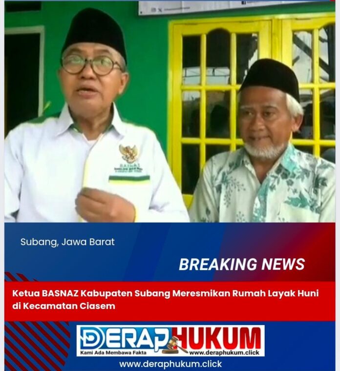 SUBANG | Deraphukum.click | Badan Amil Zakat Nasional (BAZNAS) kabupaten Subang meresmikan rumah layak huni dengan panjang 5meter dan lebar 7 meter di dusun warung nangka desa Ciasem tengah kabupaten Subang, Selasa (07/01/2025)