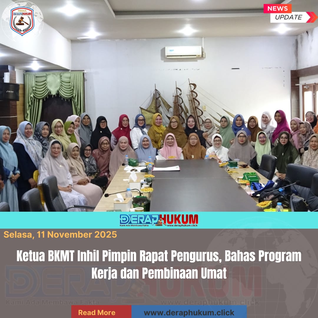 Tembilahan, Riau | DerapHukum.click | 10 November 2025, Ketua Badan Kontak Majelis Taklim (BKMT) Kabupaten Indragiri Hilir, Hj. Katerina Susanti Herman, memimpin rapat pengurus BKMT yang digelar di kediaman Bupati Indragiri Hilir, Senin (10/11/2025).