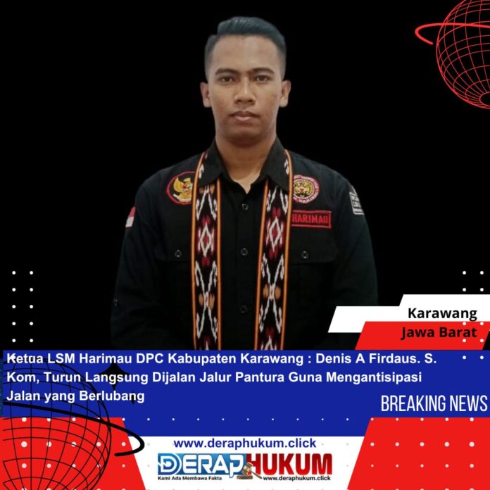 KARAWANG | Deraphukum.click | Denis A Firdaus S.Kom, Selaku ketua LSM Harimau DPC Kab Karawang turun langsung ke lokasi meninjau dan kasih arahan kepada pengendara yang melewati jalan yang berlubang, diperkirakan kedalaman jalan yang berlubang sekitar 30 sampai 40 Cm jalur arah dari Cikampek desa Pangulah baru kabupaten Karawang 26/01/2025.