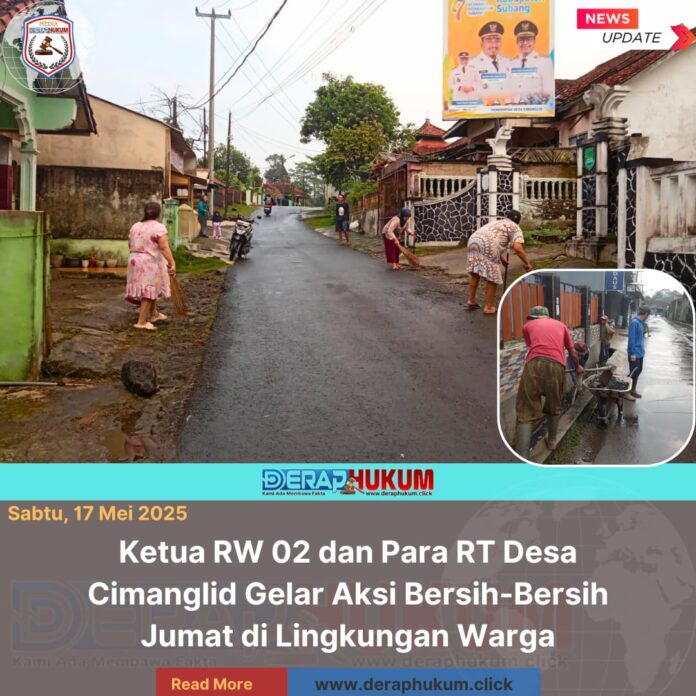 Subang, Jawa Barat | Deraphukum.click | Warga RW 02 Desa Cimanglid, Kecamatan Kasomalang, Kabupaten Subang, menggelar kegiatan kerja bakti bersama dalam program Jumat Bersih (Jumsih) yang rutin dilaksanakan setiap hari Jumat. Kegiatan ini berlangsung pada Jumat (16/5/2025) dan melibatkan Ketua RW 02, para ketua RT, serta masyarakat sekitar.