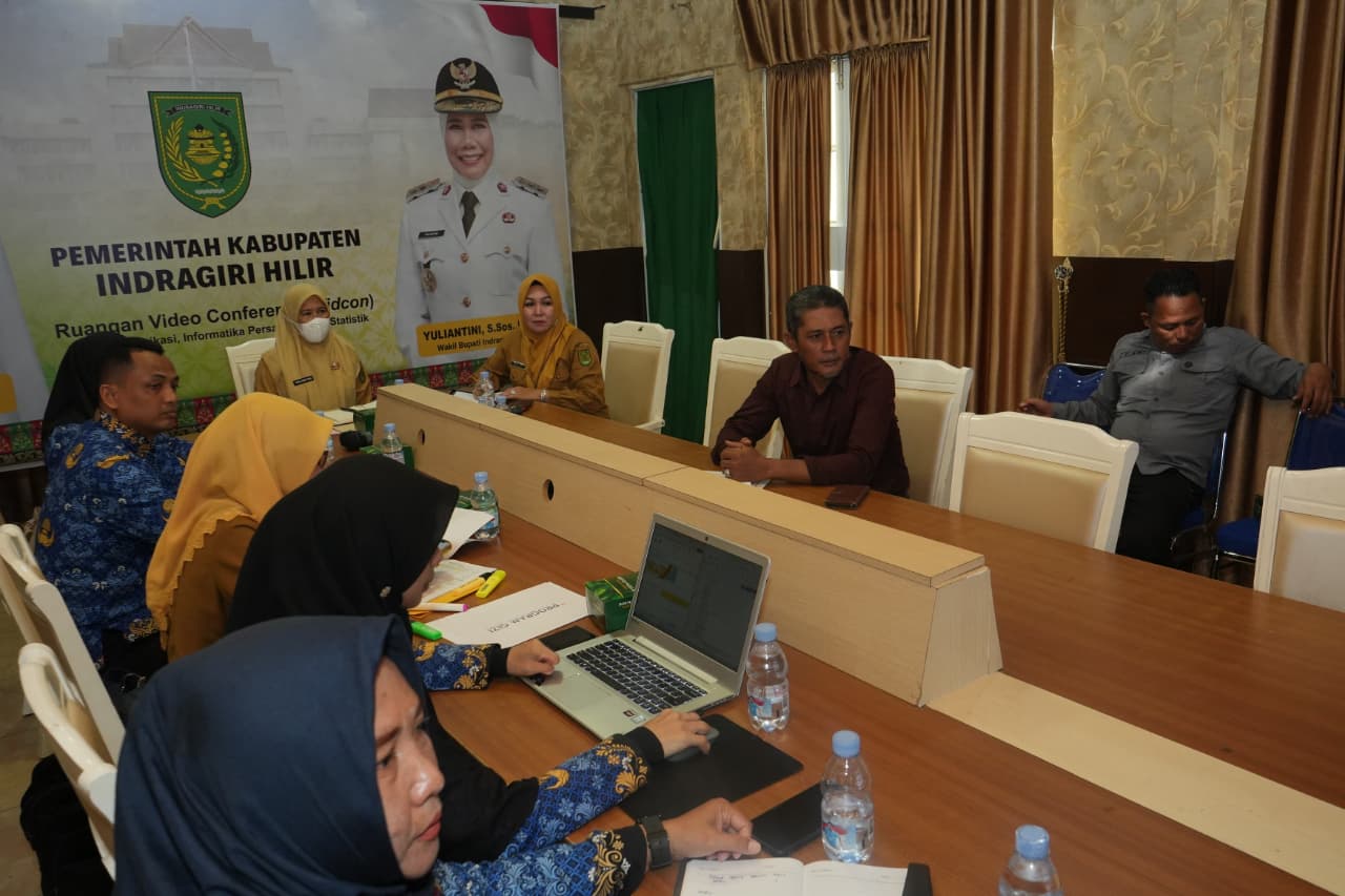 Pertemuan tersebut diikuti Yuliantini bersama jajaran Dinas Kesehatan, Bappeda, dan perangkat daerah terkait dari ruang video conference Dinas Kominfopers Inhil.