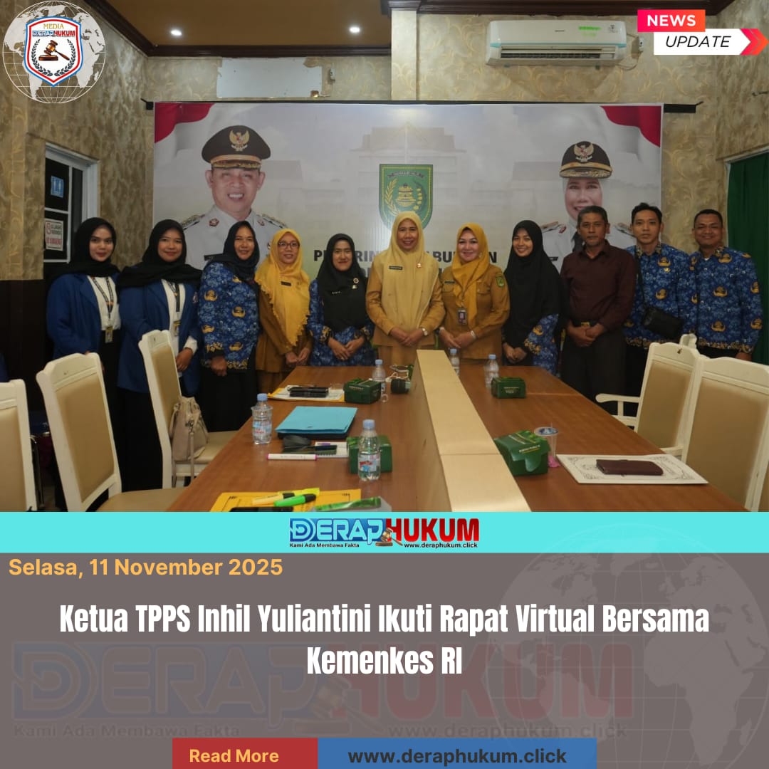 Indragiri Hilir, Riau | DerapHukum.click | Wakil Bupati Indragiri Hilir (Inhil) Yuliantini, yang juga menjabat sebagai Ketua Tim Percepatan Penurunan Stunting (TPPS) Kabupaten Inhil, mengikuti rapat virtual bersama Kementerian Kesehatan RI dan seluruh TPPS se-Indonesia, Senin (10/11/2025) siang.