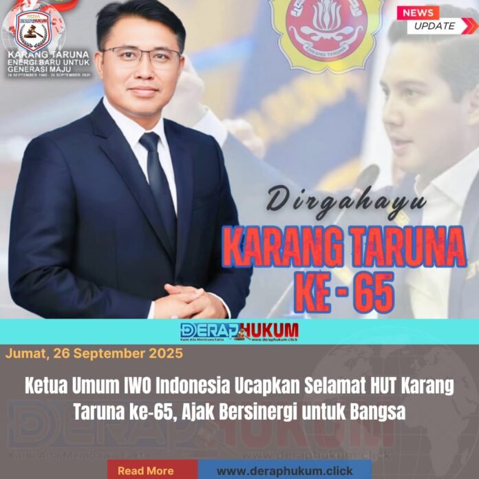 KARAWANG, JAWA BARAT | DerapHukum.click | Ketua Umum Ikatan Wartawan Online (IWO) Indonesia, Dr. H. Nisan Radian, SH., S.Akun., MH., M.Pd., menyampaikan ucapan selamat Hari Ulang Tahun Karang Taruna ke-65 yang diperingati pada 26 September 2025.