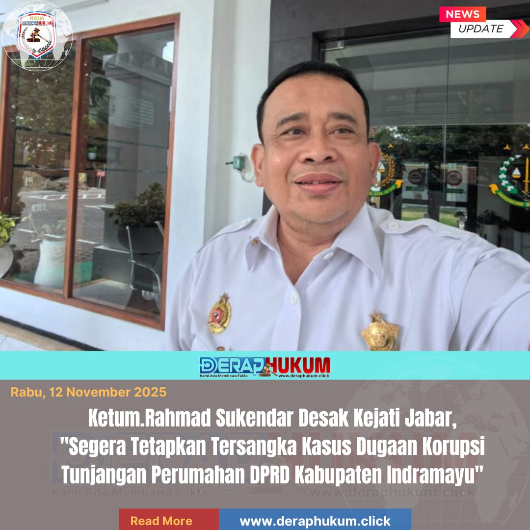 Tokoh pemerhati hukum nasional, Rahmad Sukendar, mendesak Kejaksaan Tinggi Jawa Barat (Kejati Jabar) untuk segera menetapkan tersangka dalam kasus dugaan korupsi belanja tunjangan perumahan DPRD Kabupaten Indramayu Tahun Anggaran 2022.