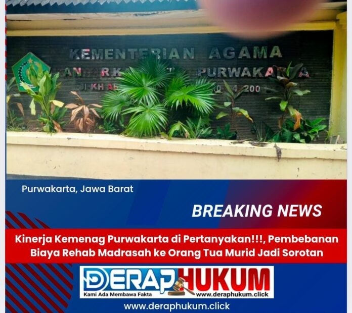 PURWAKARTA | Deraphukum.click | Derap Hukum.klik. Kebijakan yang diterapkan oleh salah satu Madrasah Ibtidaiyah Negeri (MIN) di Kabupaten Purwakarta, yang membebankan biaya rehab fisik sekolah kepada orang tua siswa, mendapat sorotan tajam dari pegiat pendidikan setempat.