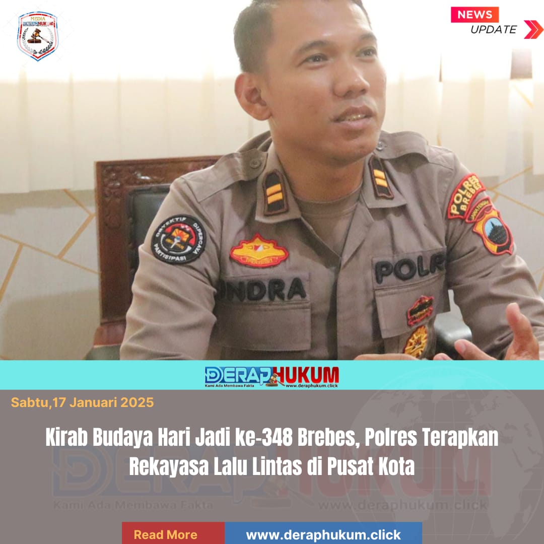 Brebes,Jawa Tengah | Deraphukum.click | Menyambut peringatan Hari Jadi ke-348 Kabupaten Brebes, Polres Brebes akan memberlakukan rekayasa lalu lintas di sejumlah ruas utama Brebes pada Minggu (18/1/2026).