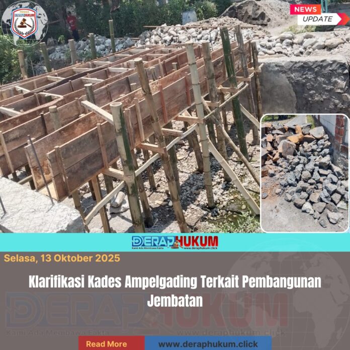 Pemalang, Jawa Tengah | Deraphukum.click | Polemik terkait pembangunan jembatan di Desa Ampelgading, Kecamatan Ampelgading, Kabupaten Pemalang, yang diduga menggunakan material lama atau bekas, mendapat tanggapan serius dari Kepala Desa Ampelgading, Suparto.