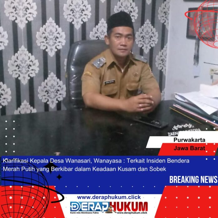 PURWAKARTA,JABAR | Deraphukum.click | Klarifikasi Kepala Desa.Wanasari. Zaenal Mustopa, Kec.Wanayasa, saya memberikan klarifikasi setelah insiden bendera Merah Putih yang berkibar kusam dan robek di halaman depan Kantor Desa