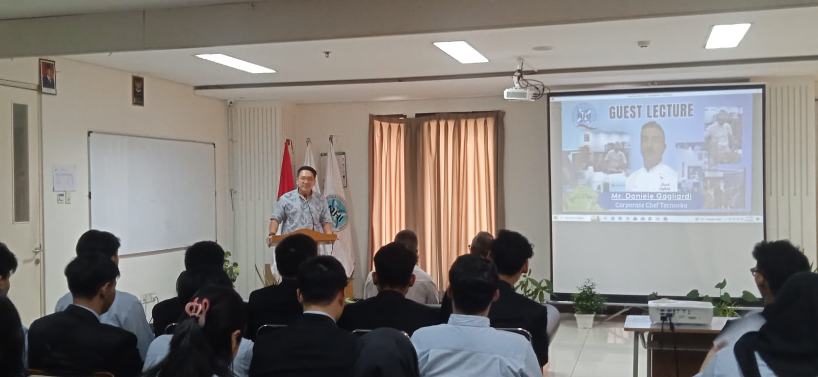 Kegiatan ini menghadirkan Daniele Gagliardi sebagai narasumber utama. Dalam sesi pemaparannya, ia menekankan pentingnya pemahaman teknologi dalam menunjang efisiensi kerja dapur, menjaga konsistensi rasa, serta meningkatkan produktivitas tim kitchen.