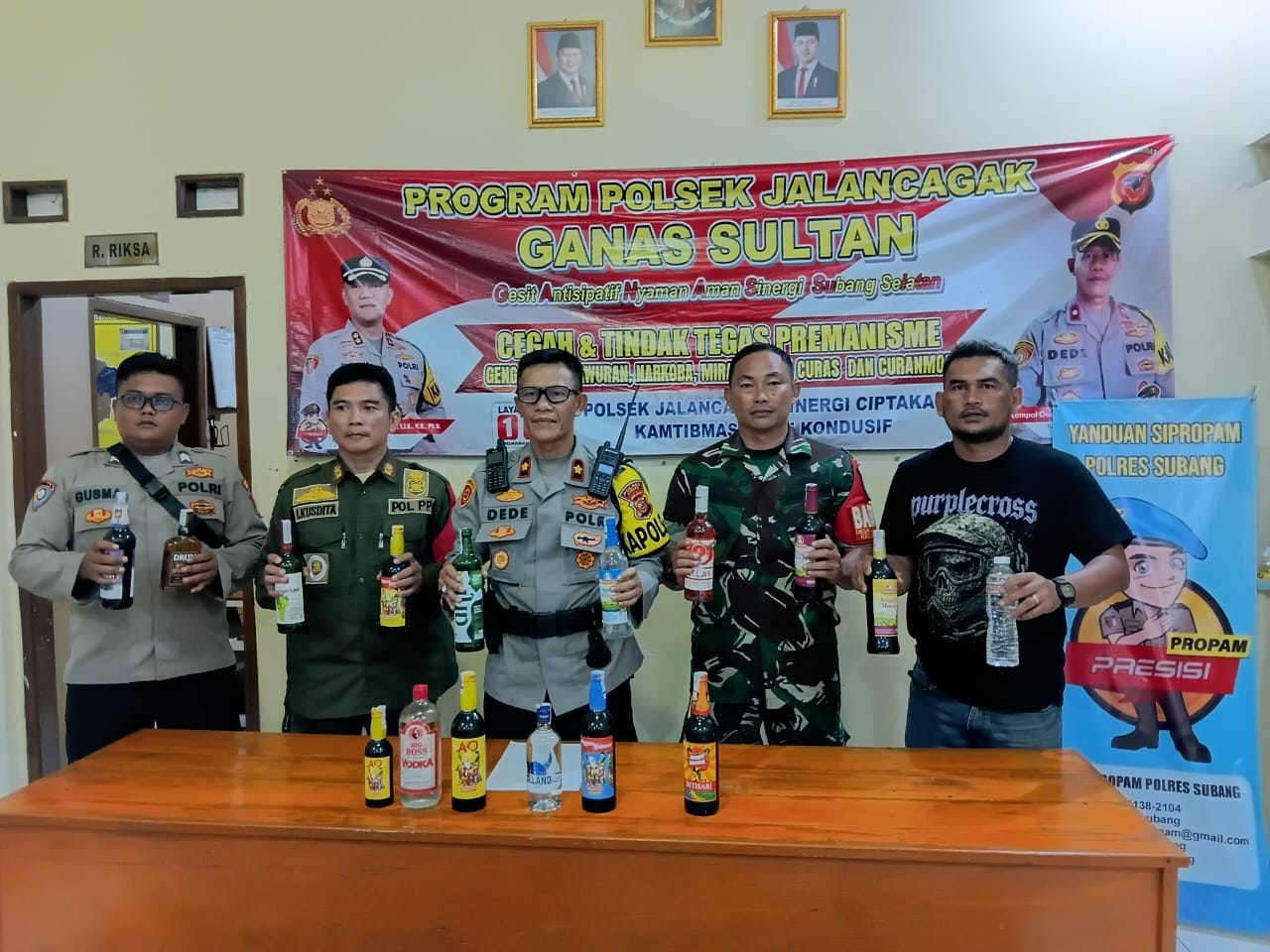“Dalam menciptakan situasi wilayah hukum Polsek Jalan Cagak yang aman dan kondusif menjelang perayaan Natal dan Tahun Baru, kami bersama jajaran dan Forkopimcam berkolaborasi menggelar razia minuman keras,” ujarnya.