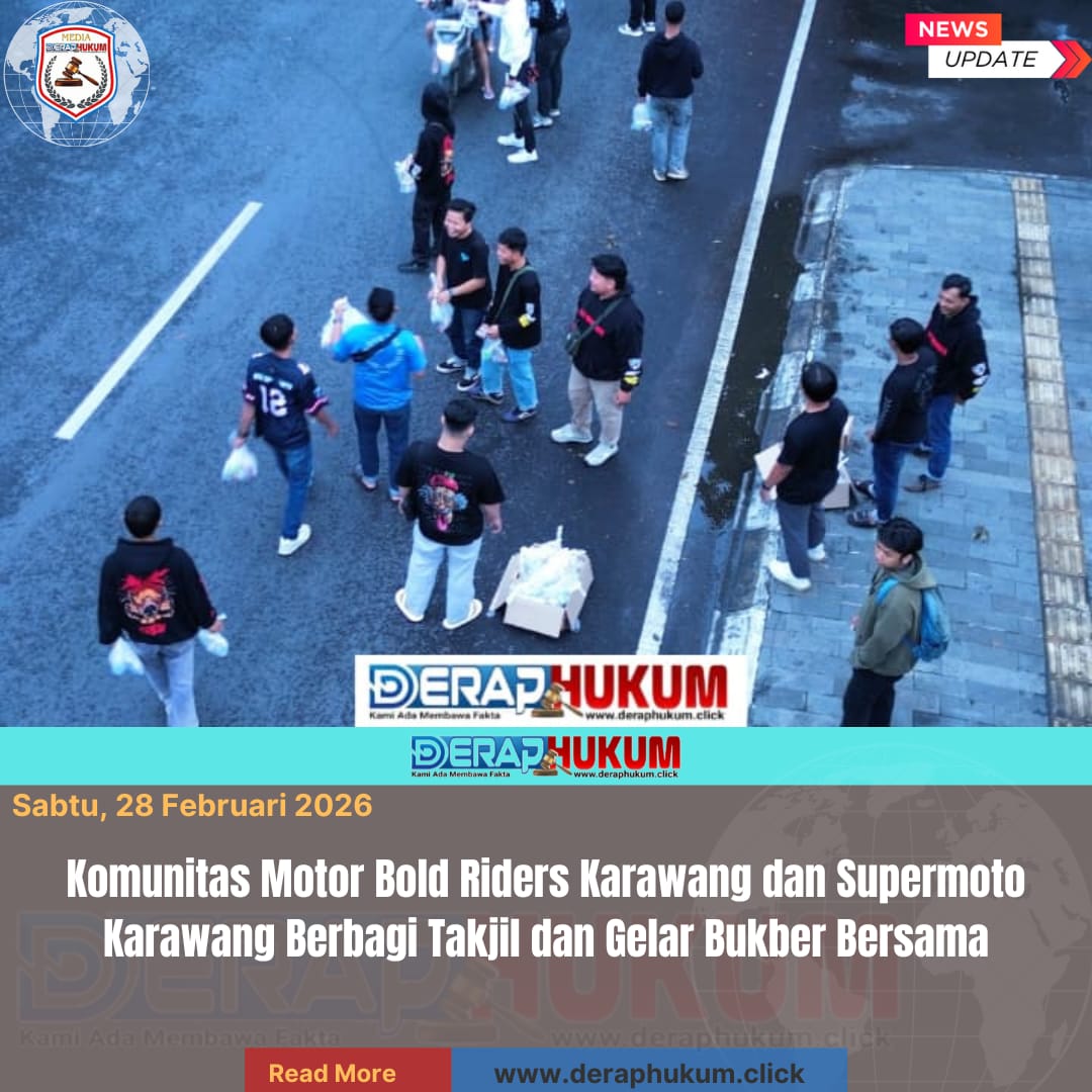 Karawang, Jawa Barat | Deraphukum.click | Semangat berbagi di bulan suci Ramadan ditunjukkan oleh Komunitas Motor Bold Riders Karawang bersama Supermoto Karawang dengan menggelar kegiatan berbagi takjil kepada masyarakat. Kegiatan tersebut dilaksanakan di depan kantor PT Djarum yang berlokasi di Jalan Jenderal Ahmad Yani, Karawang.
