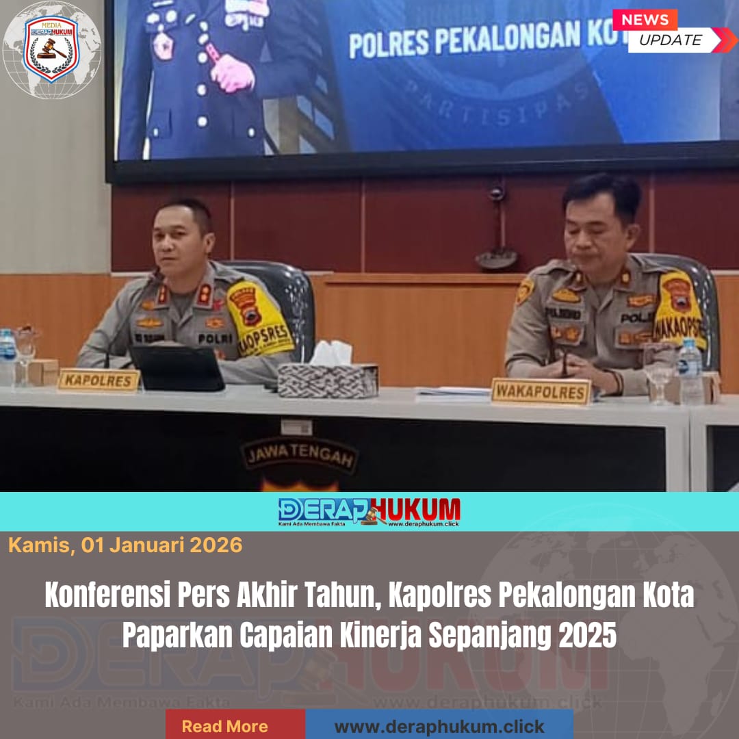 PEKALONGAN KOTA, Jawa Tengah | DerapHukum.click | Polres Pekalongan Kota,  Polda Jateng, Mengakhiri tahun 2025, Polres Pekalongan Kota menggelar konferensi pers akhir tahun terkait perkembangan situasi keamanan serta capaian kinerja penegakan hukum sepanjang 2025, Rabu (31/12/2025).