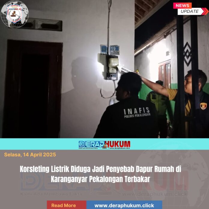 Pekalongan,Jawa Tengah | Deraphukum.click | Polres Pekalongan – Polda Jateng – Dapur pada rumah yang berlokasi di Dukuh Wonosirno, Desa Kutosari, Kecamatan Karanganyar, Kabupaten Pekalongan terbakar. Peristiwa terjadi pada Senin, 13 April 2026 sekitar pukul 02.30 Wib. Diketahui, rumah tersebut merupakan milik Sumarjo (75)