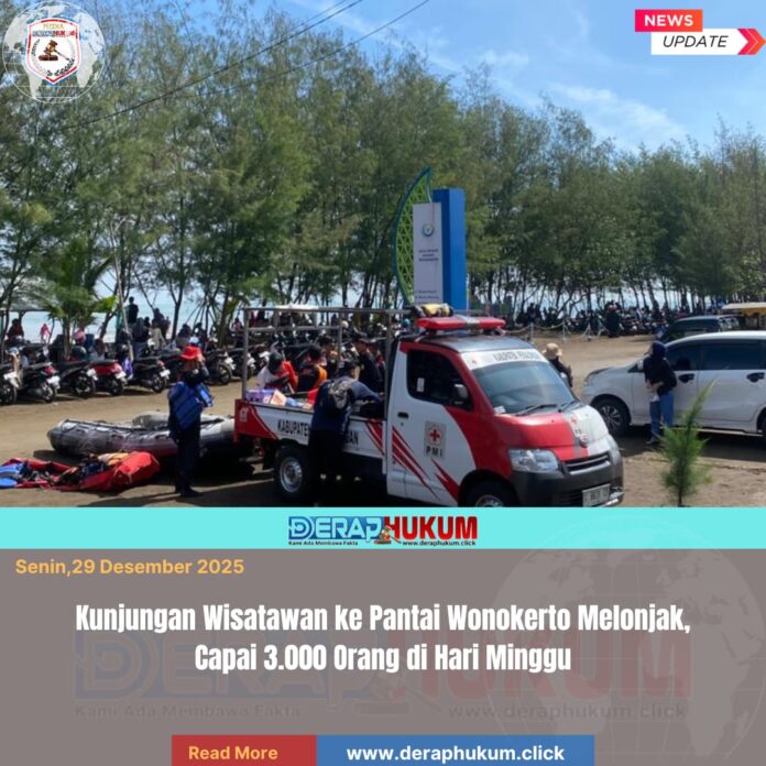 Pekalongan,Jawa Tengah | Deraphukum.click | Lonjakan wisatawan terjadi di objek wisata Pantai Wonokerto, Kabupaten Pekalongan, pada libur akhir tahun. Pada Minggu, 28 Desember 2025, destinasi bahari yang dikelola BUMDes Mitra Mina tersebut mencatat sekitar 3.000 pengunjung dalam satu hari.