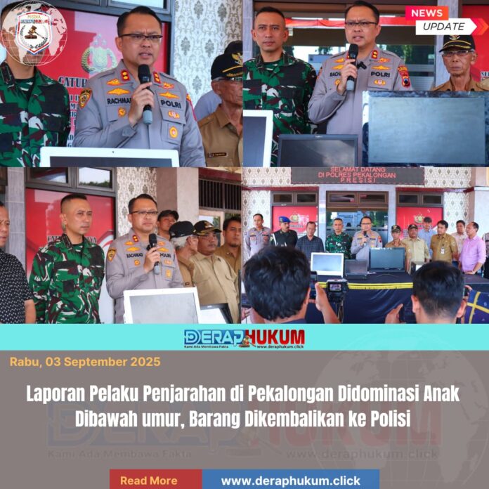 Pekalongan,Jawa Tengah | Deraphukum.click | Polres Pekalongan – Polda Jateng – Sejumlah pelaku penjarahan yang terjadi saat kerusuhan di Kota Pekalongan mulai mengembalikan barang-barang hasil jarahannya melalui pihak kepolisian. Pengembalian dilakukan atas kesadaran masyarakat setelah adanya imbauan dari aparat dan perangkat desa.