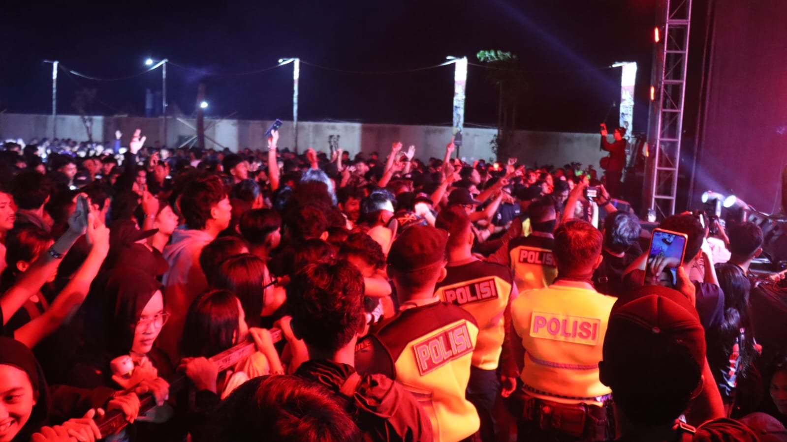 > “Kami menurunkan sebanyak 126 personel yang disebar di berbagai titik, mulai dari pintu masuk, area panggung, hingga jalur keluar penonton. Tujuannya untuk mengantisipasi gangguan keamanan serta menjaga kelancaran acara,” ujar Kompol Farid.