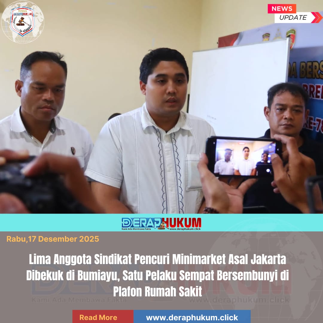 Brebes,Jawa Tengah | Deraphukum.click | Satuan Reserse Kriminal (Satreskrim) Polres Brebes berhasil mengungkap sindikat pencurian spesialis minimarket yang beraksi di Toserba Jadi Baru, Desa Adisana, Kecamatan Bumiayu, Rabu (17/12/2025).