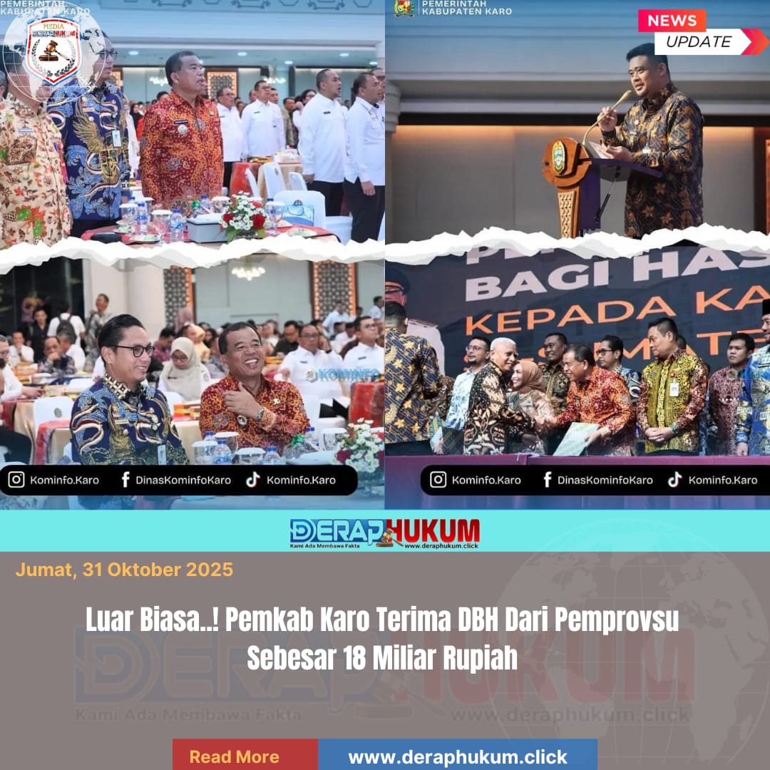 Pemerintah Kabupaten (Pemkab) Karo, melalui Bupati Karo Brigjen Pol (Purn) Dr.dr.Antonius Ginting, Sp.OG,M.Kes terima kekurangan Dana Bagi Hasil (DBH) Tahun 2023 – 2025 sebesar Rp18.180.394.546 dari Pemerintah Provinsi Sumatera Utara (Pemprovsu). Penyerahan DBH ini secara simbolis disampaikan Gubernur Sumatera Utara (Gubsu) Muhammad Bobby Afif Nasution di Aula Tengku Rizal Nurdin, Kantor Gubernur Sumut, Jalan Diponegoro No. 30 Medan, Rabu (29/10/2025).