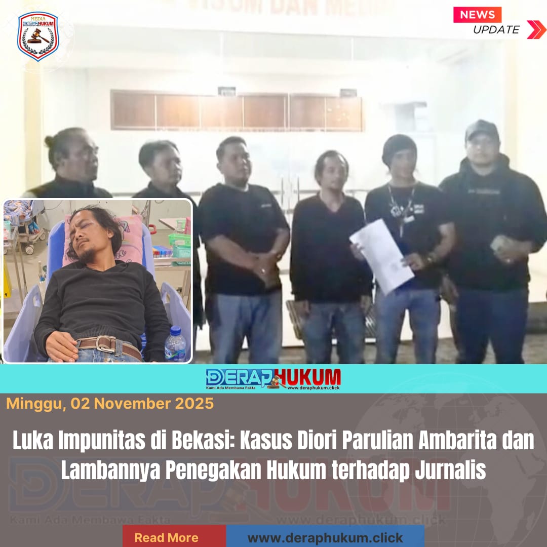 BEKASI, JAWA BARAT | Deraphukum.click | Peringatan International Day to End Impunity for Crimes against Journalists tahun ini kembali membuka luka lama dunia pers Indonesia. Di Kabupaten Bekasi, nama Diori Parulian Ambarita, atau akrab disapa Ambar, menjadi simbol nyata rentannya profesi jurnalis dan lemahnya komitmen penegakan hukum terhadap kekerasan yang menimpa pewarta.