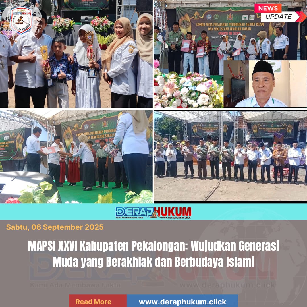 Doro, | Deraphukum.click | 3 September 2025 – Dinas Pendidikan (Dindik) Kabupaten Pekalongan menggelar acara Lomba Mata Pendidikan Agama Islam dan Seni Islami Sekolah Dasar (MAPSI SD) XXVI tingkat Kabupaten Pekalongan pada tanggal 3 September 2025. Acara ini berlangsung di halaman Kecamatan Doro dan dihadiri oleh berbagai pejabat serta tokoh penting di wilayah setempat.