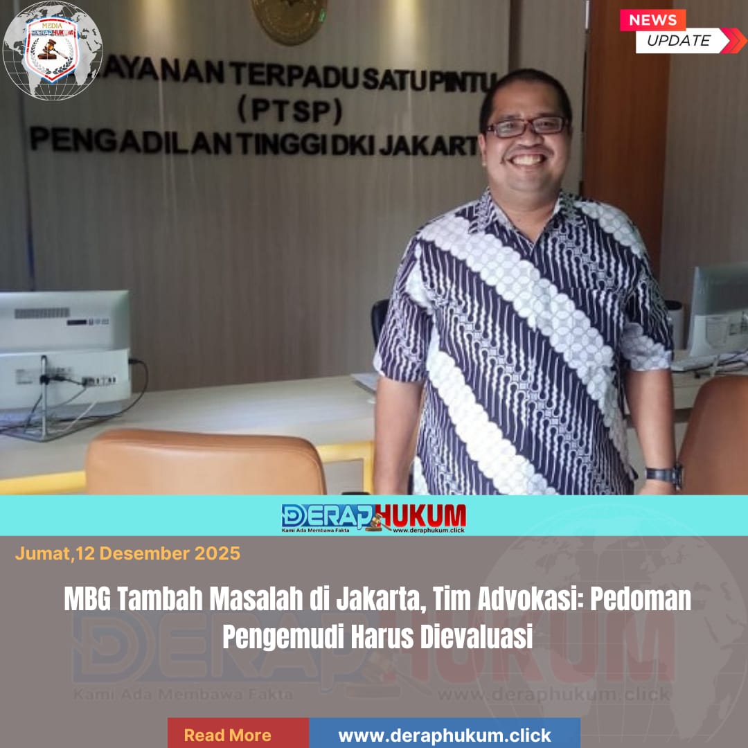 Jakarta, | Deraphukum.click | Jumat, 12 Desember 2025 — Program Makan Bergizi Gratis (MBG) kembali menjadi sorotan publik setelah sebuah mobil pengangkut MBG dilaporkan menabrak pagar sebuah sekolah di Jakarta hingga menyebabkan sejumlah siswa tertabrak. Insiden ini memicu kritik dari Tim Advokasi Peduli Kesehatan Warga Jakarta.
