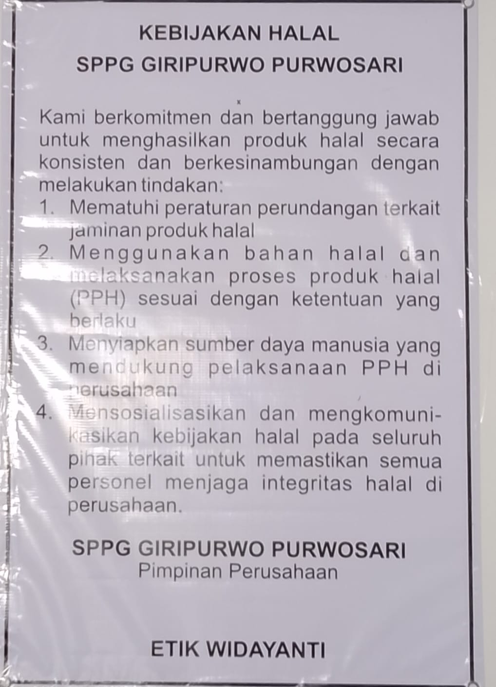 Dengan begitu diharapkan SPPG Jlumbang Giripurwo Purwosari Gunungkidul DIY mampu kerja dengan baik dalam memenuhi program pemerintah seperti yang diharapkan Presiden Prabowo Subiyanto bersama para menterinya.