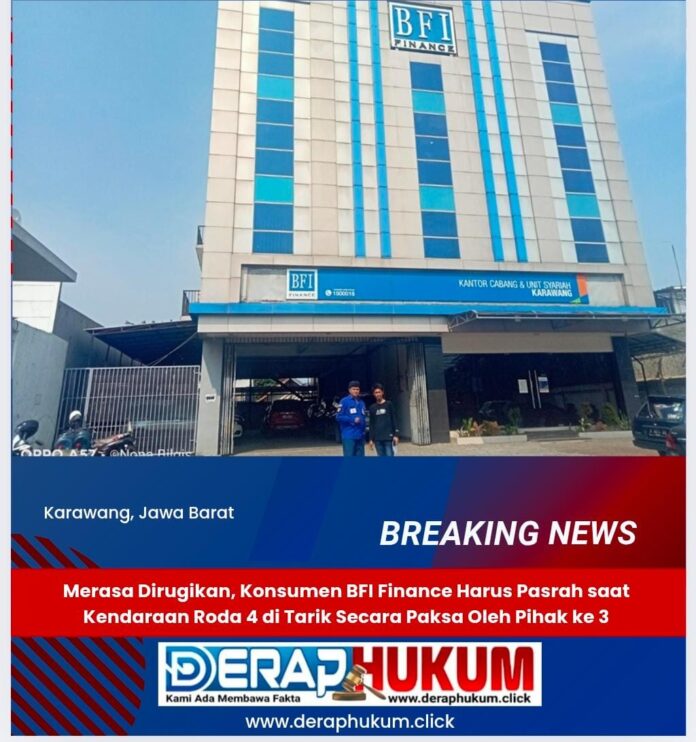 KARAWANG | Deraphukum.click | Dadan (34), Konsumen aktif BFI Finance Cikampek, merasa terintimidasi saat kendaraan roda 4, di tarik secara paksa oleh pihak ke 3 di jalan, secara aturan dari MK yakni Ketika mengalami gagal bayar kendaraan, konsumen mempunyai hak untuk tidak ditarik kendaraan mereka di jalanan. Hal tersebut sesuai dengan Putusan MK Nomor 71/PUU-XIX/2021.Kreditur harus mengajukan permohonan pelaksanaan eksekusi kepada Pengadilan Negeri.