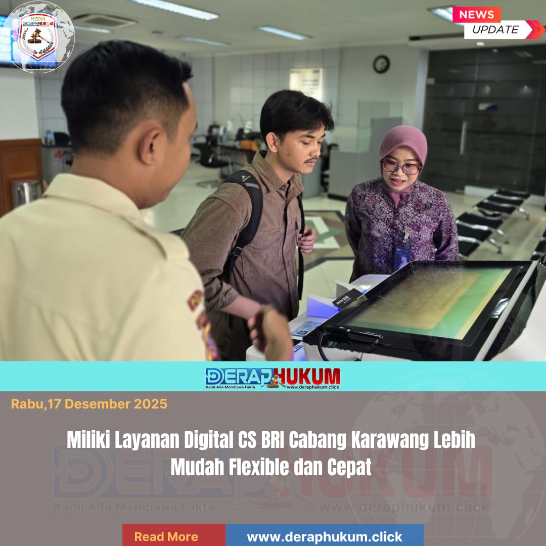 Karawang,Jawa Barat | Deraphukum.click | Bank Rakyat Indonesia (BRI) Kantor Cabang (KC) Karawang memiliki layanan unggulan Transformasi digital yaitu Mesin Digital Customer Service (CS) yang hadir untuk kemudahan layanan Nasabah BRI.