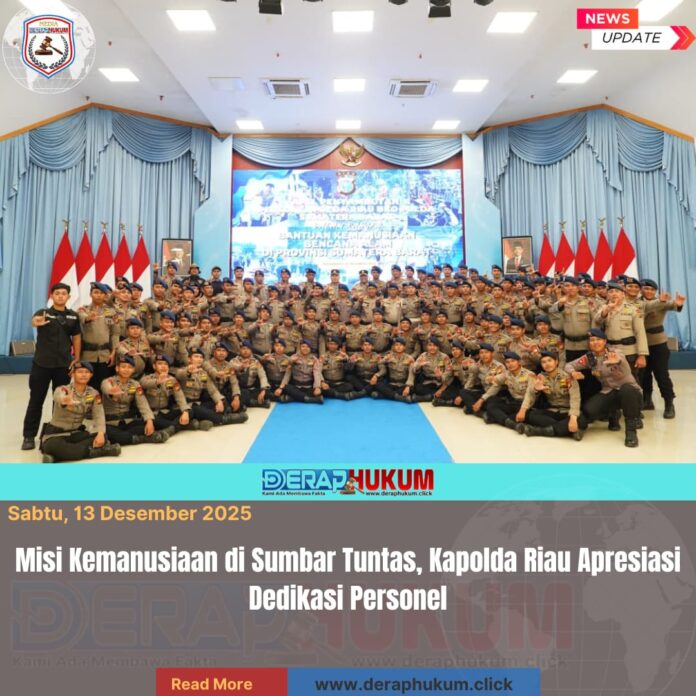 Pekanbaru, Riau | DerapHukum.click | Kapolda Riau Irjen Pol Herry Heryawan menyambut kepulangan 308 personel yang telah menuntaskan misi kemanusiaan di Kabupaten Agam, Sumatera Barat. Ia menyampaikan apresiasi tinggi atas dedikasi dan ketulusan para personel dalam menjalankan tugas kemanusiaan tersebut.