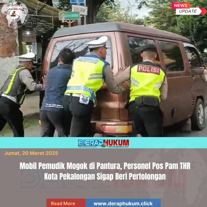 Pekalongan Kota, | Deraphukum.click | Polres Pekalongan Kota – Polda Jateng – Di tengah pengamanan arus mudik Idul Fitri 1447 H/2026, personel Pos Pengamanan (Pos Pam) THR Polres Pekalongan Kota sigap membantu mendorong kendaraan pemudik yang mengalami mogok di jalur Pantura, Kamis (19/3/2026) petang.