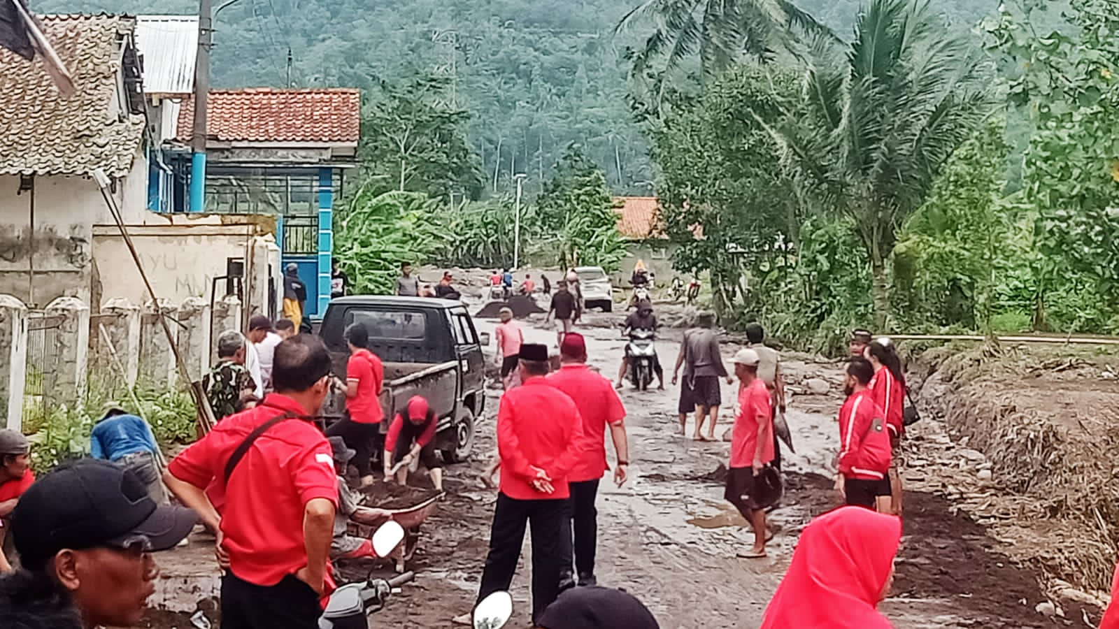 Di lokasi bencana, DPC PDI Perjuangan Brebes menyalurkan bantuan berupa paket sembako dan peralatan kebersihan kepada warga terdampak, secara simbolis diterima oleh Kepala Desa Adisana Ahmad Yani.