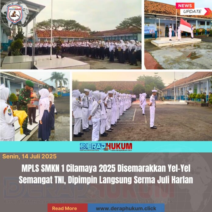 Karawang, Jawa Barat | DerapHukum.click | Suasana penuh semangat dan kedisiplinan mewarnai kegiatan Masa Pengenalan Lingkungan Sekolah (MPLS) di SMKN 1 Cilamaya, Senin (14/7/2025). Ratusan siswa baru tampak kompak dan antusias mengikuti seluruh rangkaian kegiatan, terutama saat sesi yel-yel yang dipimpin langsung oleh personel TNI dari Koramil 0408/Cilamaya.