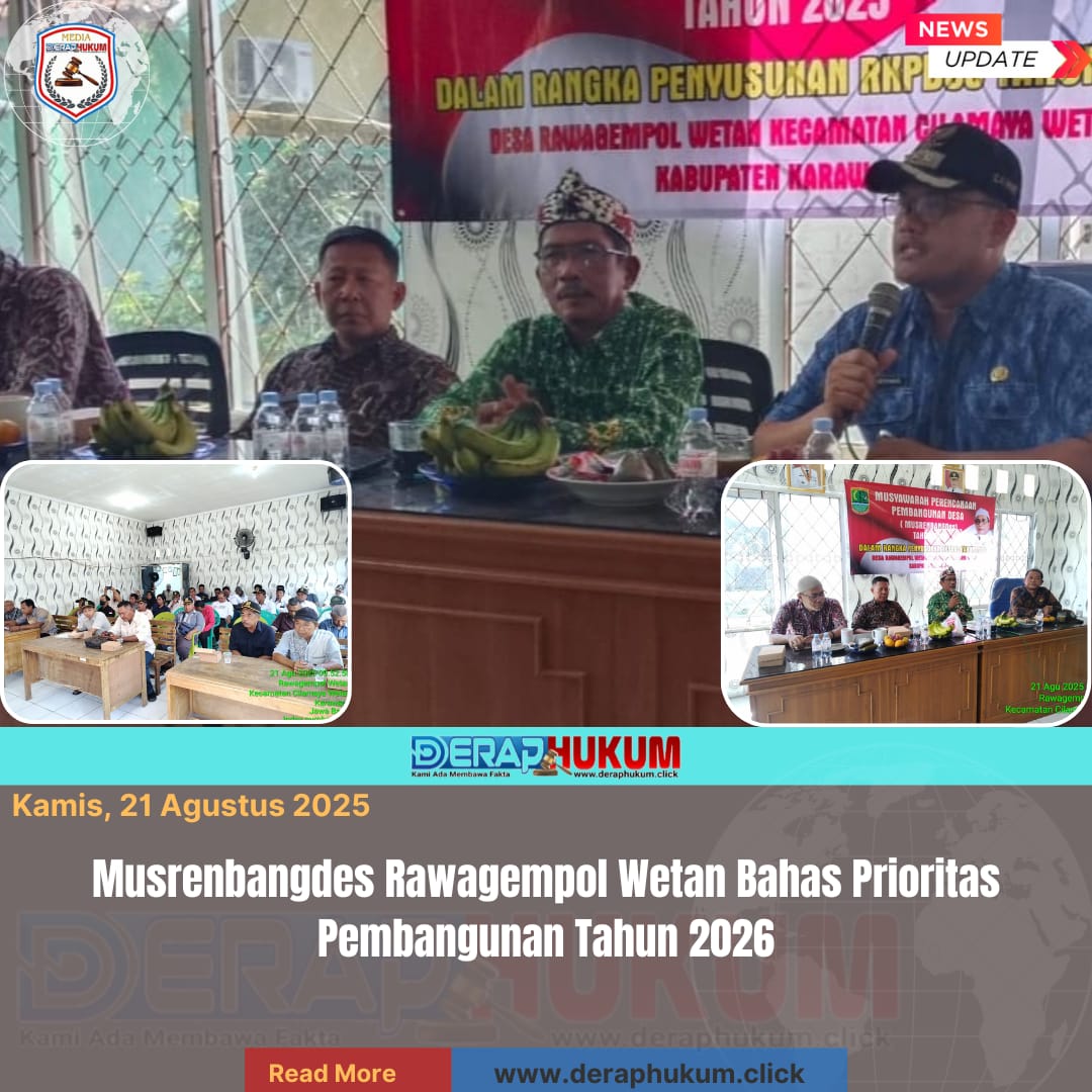KARAWANG, JAWA BARAT | DerapHukum.click | Pemerintah Desa Rawagempol Wetan, Kecamatan Cilamaya Wetan, Kabupaten Karawang, menggelar Musyawarah Perencanaan Pembangunan Desa (Musrenbangdes) tahun 2026 pada Kamis (21/8/2025) bertempat di aula desa.